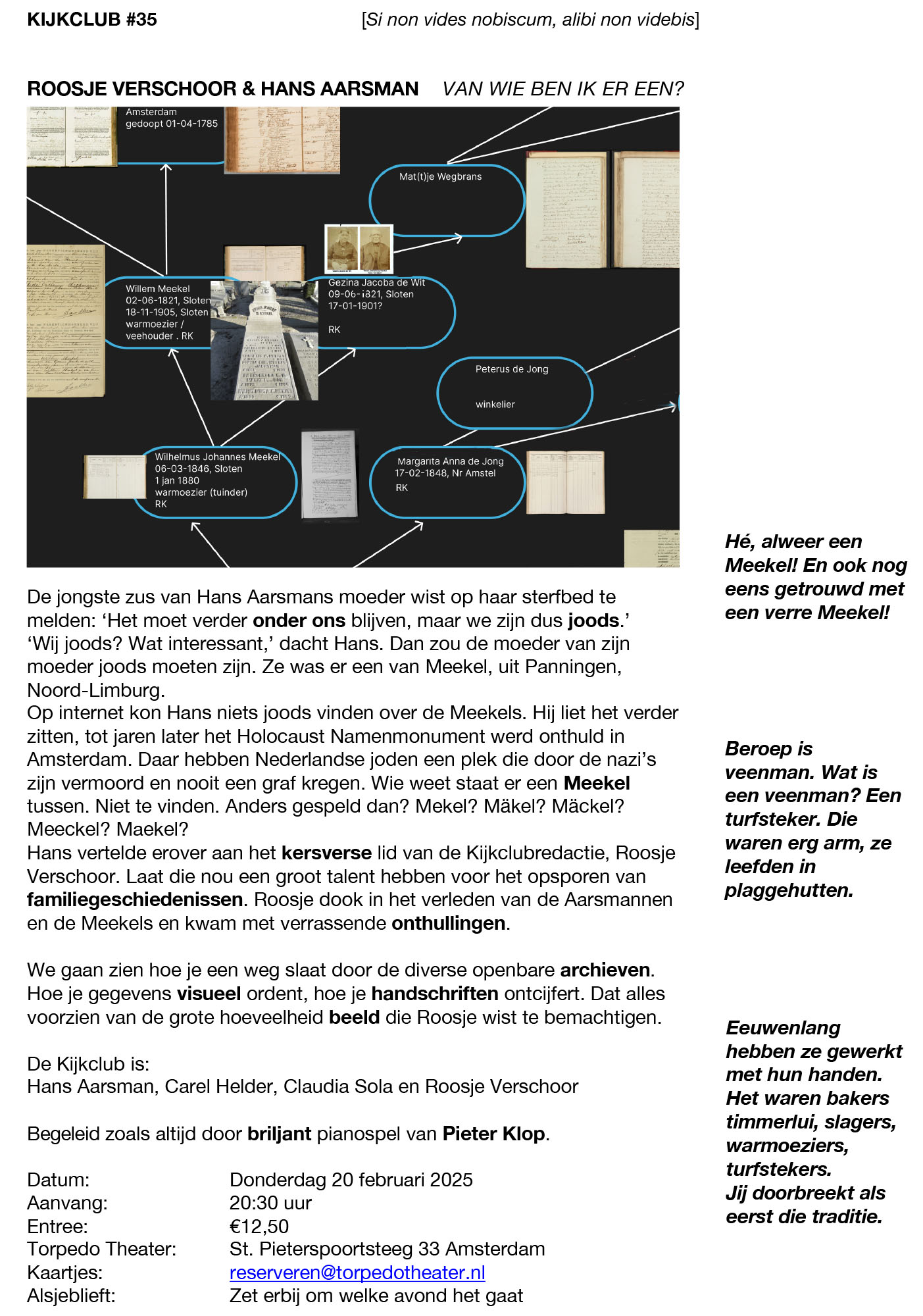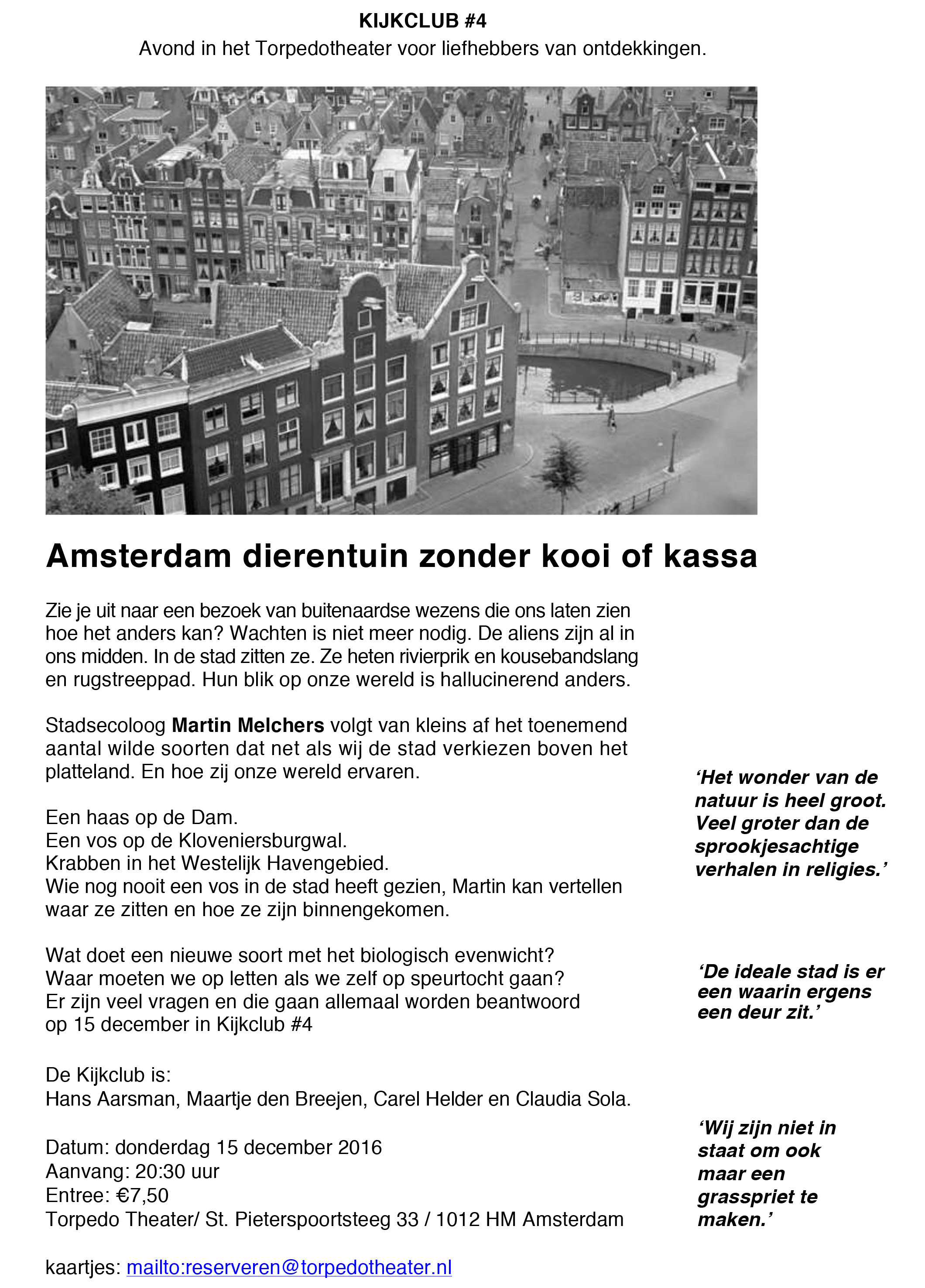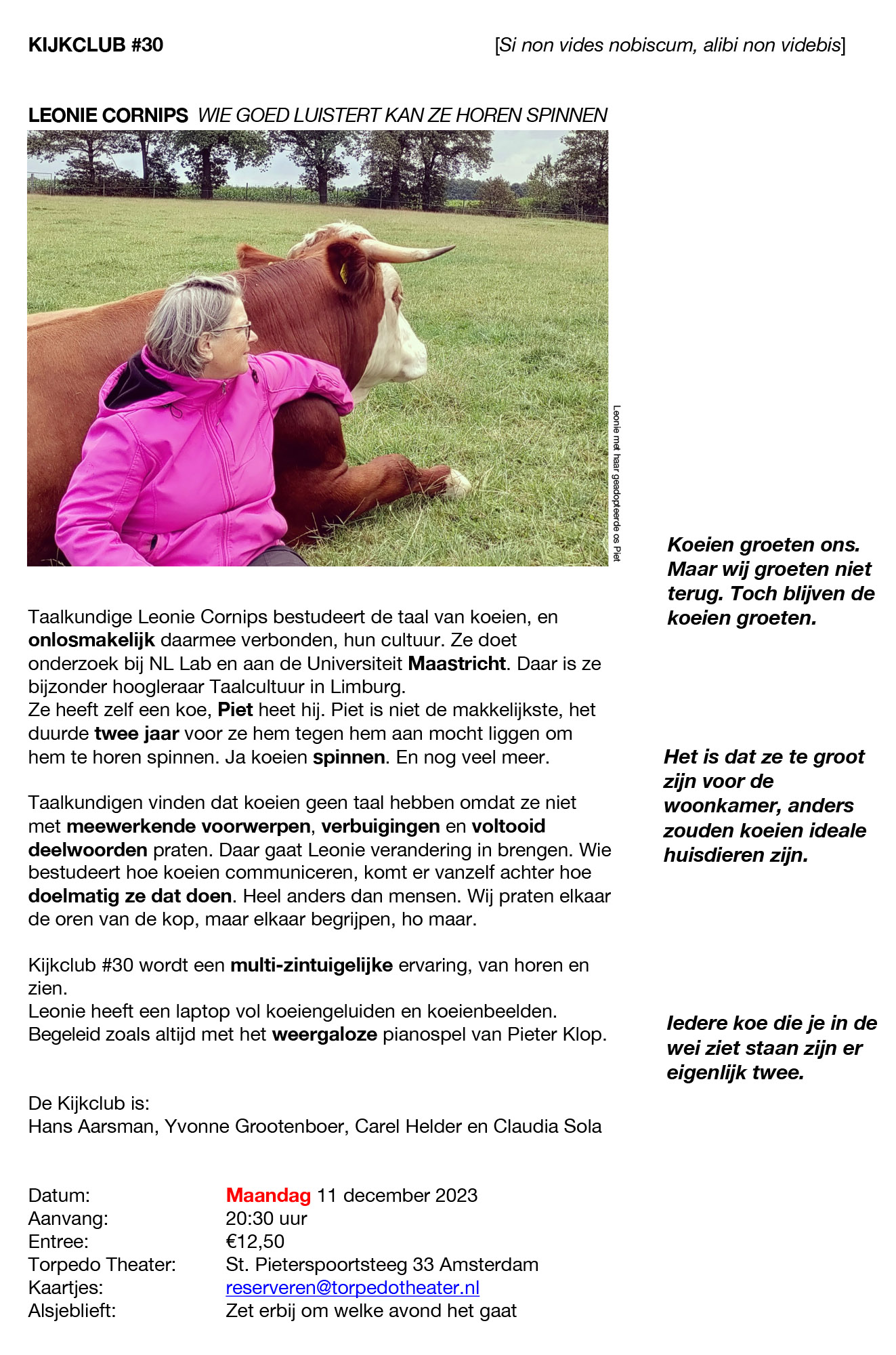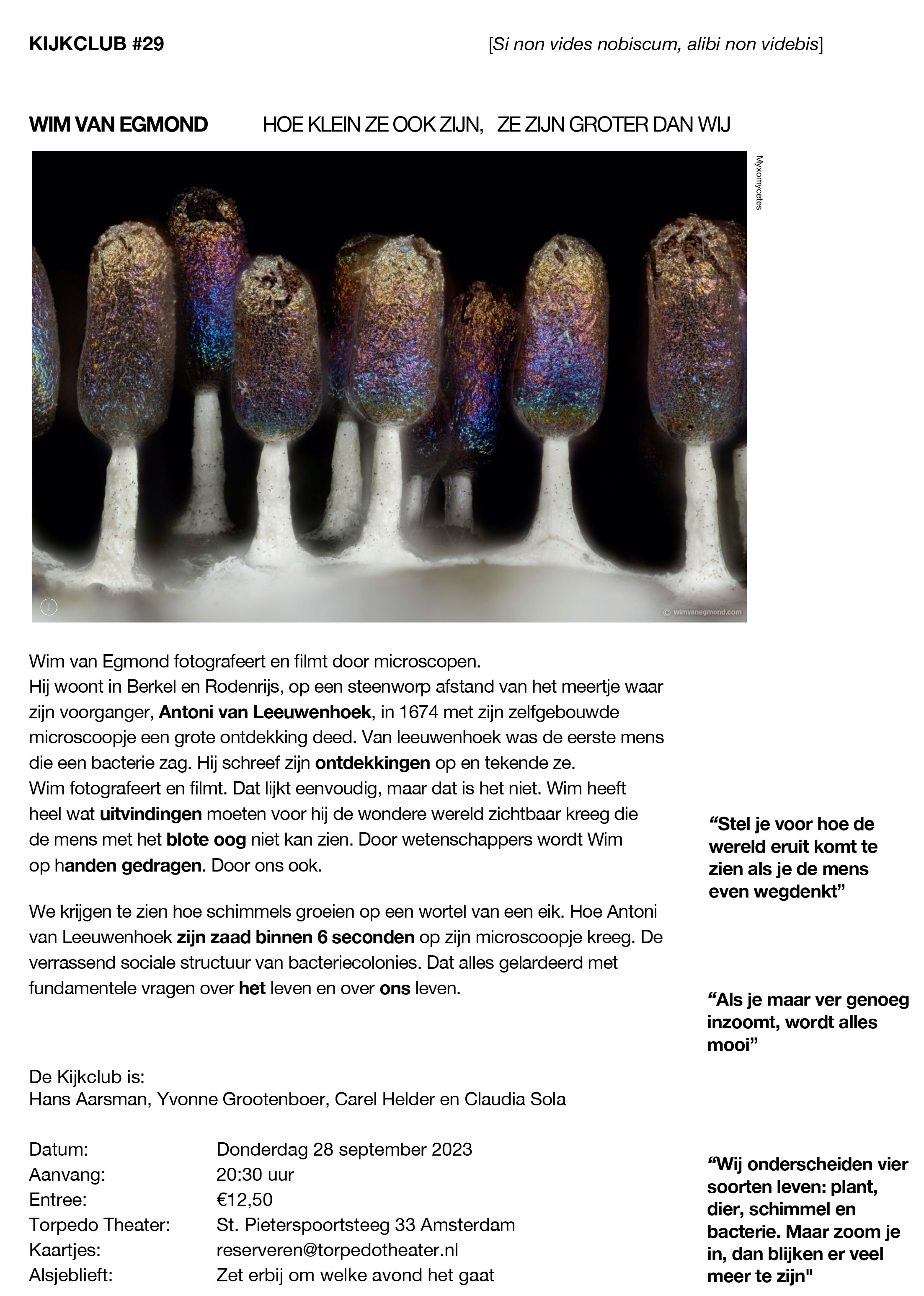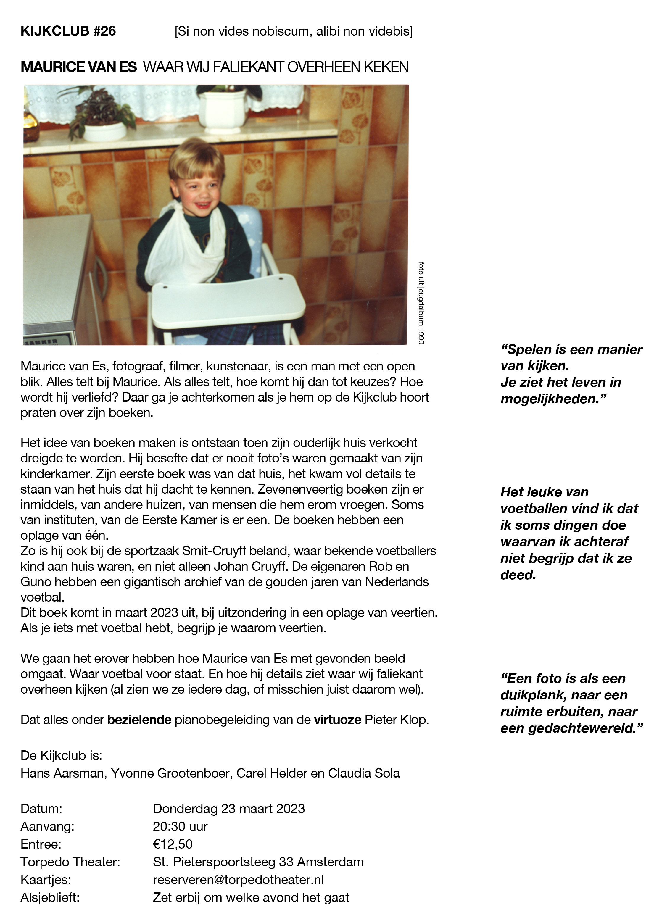 De Kijkclub is een tweemaandelijkse avond in het Torpedotheater voor liefhebbers van ontdekkingen doen louter door observatie.